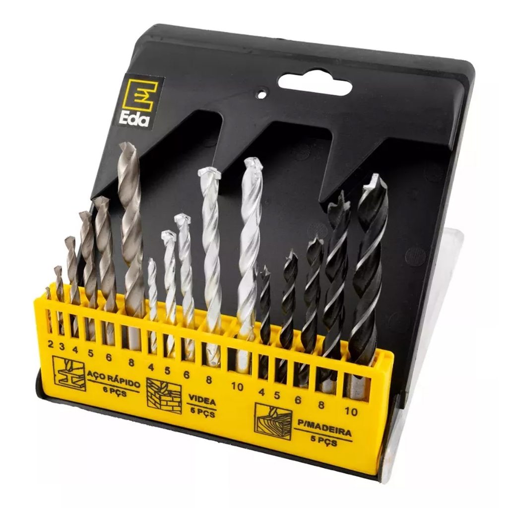 Jogo de Brocas EDA 9TG 16 Peças Metal Concreto Madeira
