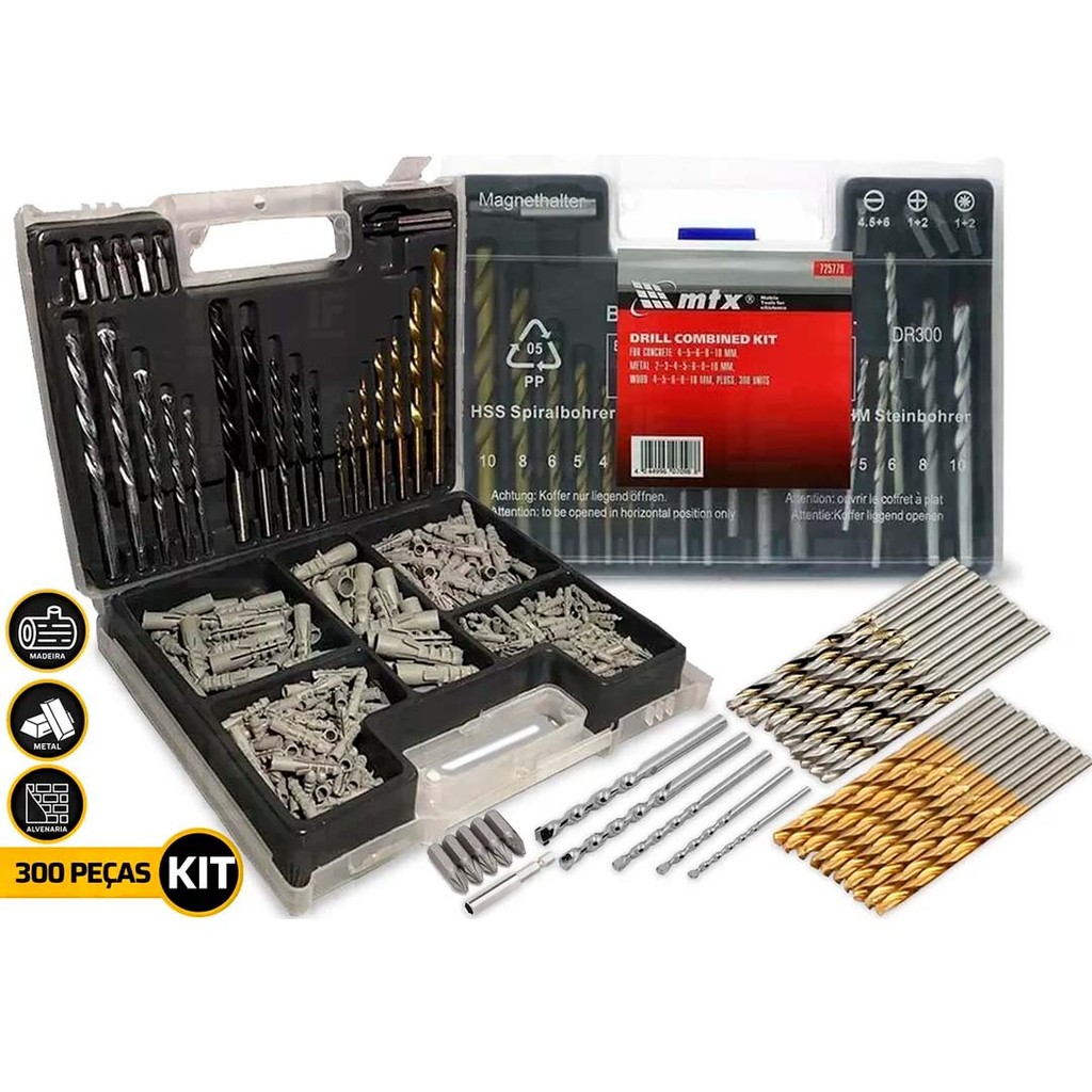 JOGO DE BROCAS PARA CONCRETO 300 PCS + JOGO SOQUETE KIT DE 40 PECAS