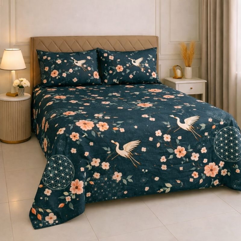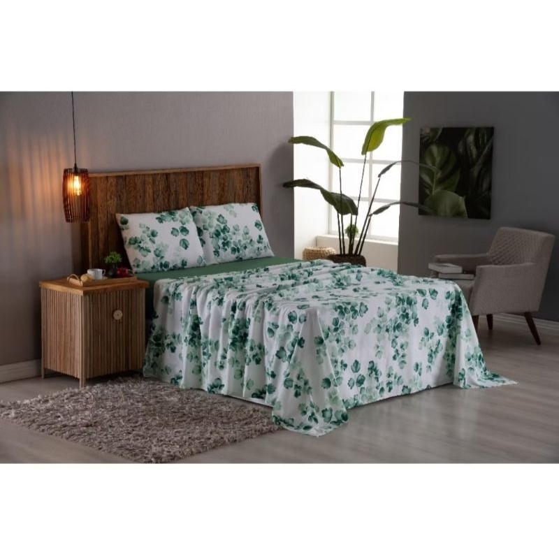 JOGO DE CAMA 3 PEÇAS CASAL BOX/QUEEN TECIDO TOQUE DE ALGODÃO ESTAMPADO
