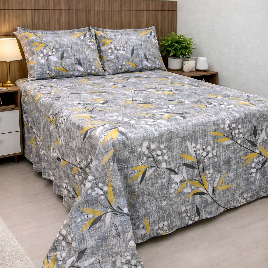 Jogo de Cama 3 Peças Lençol Fronha Estampado Floral Casal Box Queen Algodão