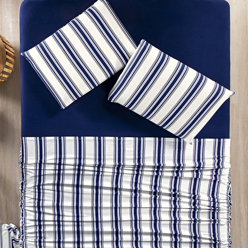 Jogo De Cama 4 Peças King\Queen\Casal\Solteiro Fio Penteado 100% Algodão Estampa Listrada - Marin