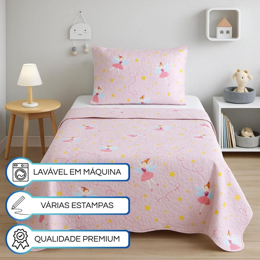Deixe o quarto das crianças mais bonito e aconchegante com o Kit Cobre Leito Infantil Solteiro Dupla Face Matelado. Produzido com tecido macio e costuras reforçadas, ele garante conforto e durabilidade para o dia a dia. O modelo dupla face traz praticidade e estilo, permitindo variar a decoração sempre que quiser! Conteúdo do Kit (Solteiro) 01 Colcha Dupla Face Matelado – 1,60m x 2,20m 01 Porta Travesseiro – 50cm x 70cm + 5cm de aba Características Acabamento de alta qualidade Costuras reforçadas Praticidade do modelo dupla face Lavável em máquina Secagem rápida Variações disponíveis Modelos Masculinos: Aviões • Esportes • Espaço Sideral Modelos Femininos: Flores • Fadas • Borboletas Composição: Tecido: 100% Poliéster Enchimento: 100% Poliéster Fabricado no Brasil