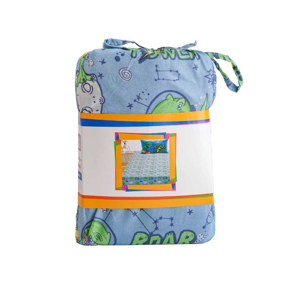 Jogo de Cama Infantil Solteiro Estampado Lençol com Elástico + Fronha Dinossauro Game Fada