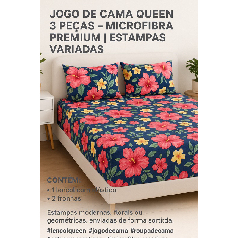 Jogo de Cama King 3 Peças – Microfibra Estampada | Estampas Sortidas