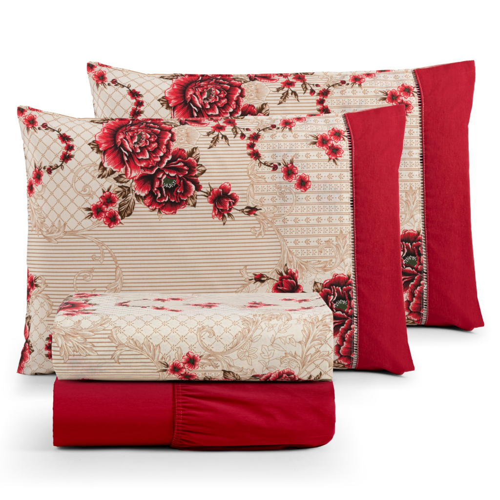 Jogo de Cama Lençol Casal BOX 4 Pçs 100% Algodão - 180 Fios