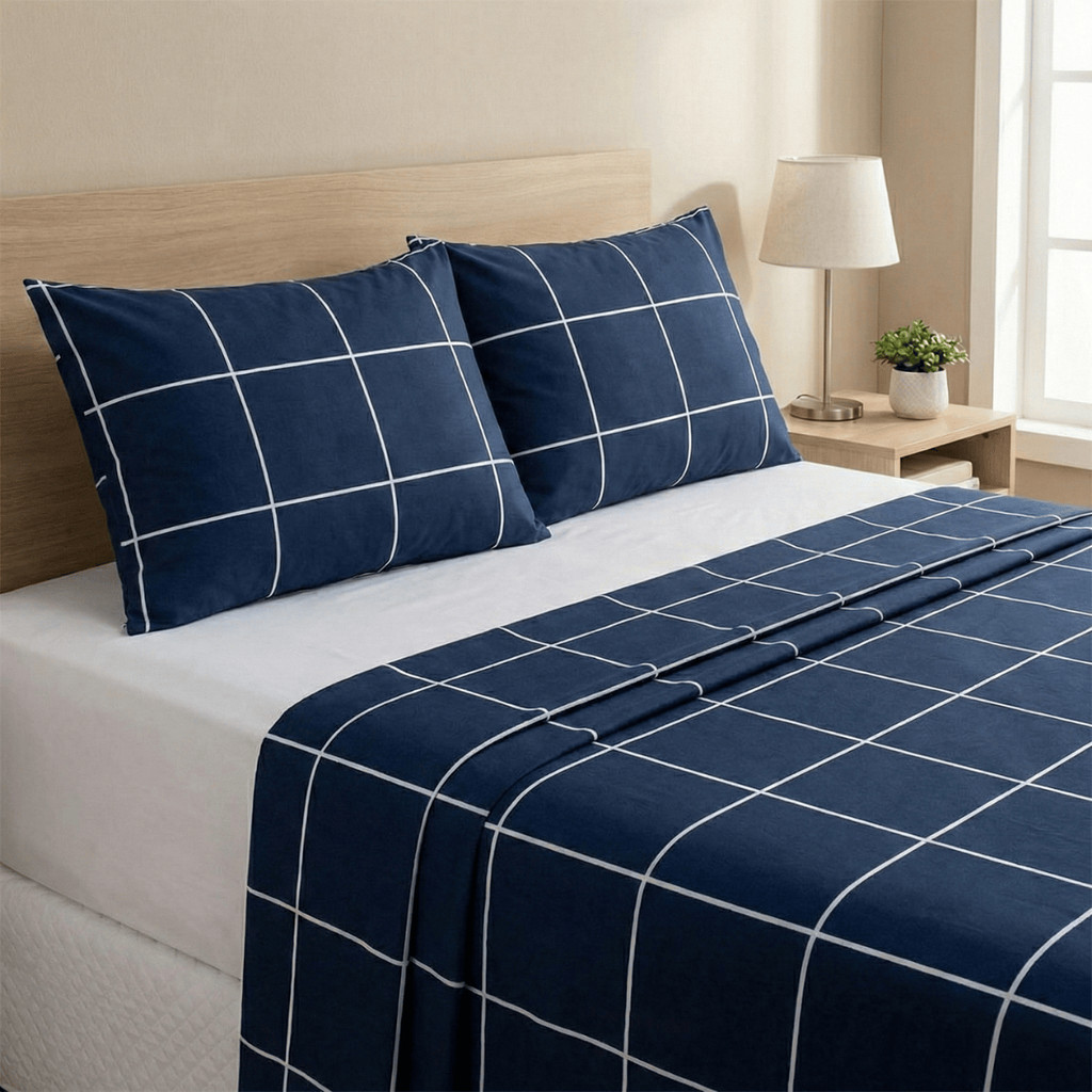 Jogo De Cama Lençol Casal Padrão 4 Peças Percal Algodão Com Fronha Estampado