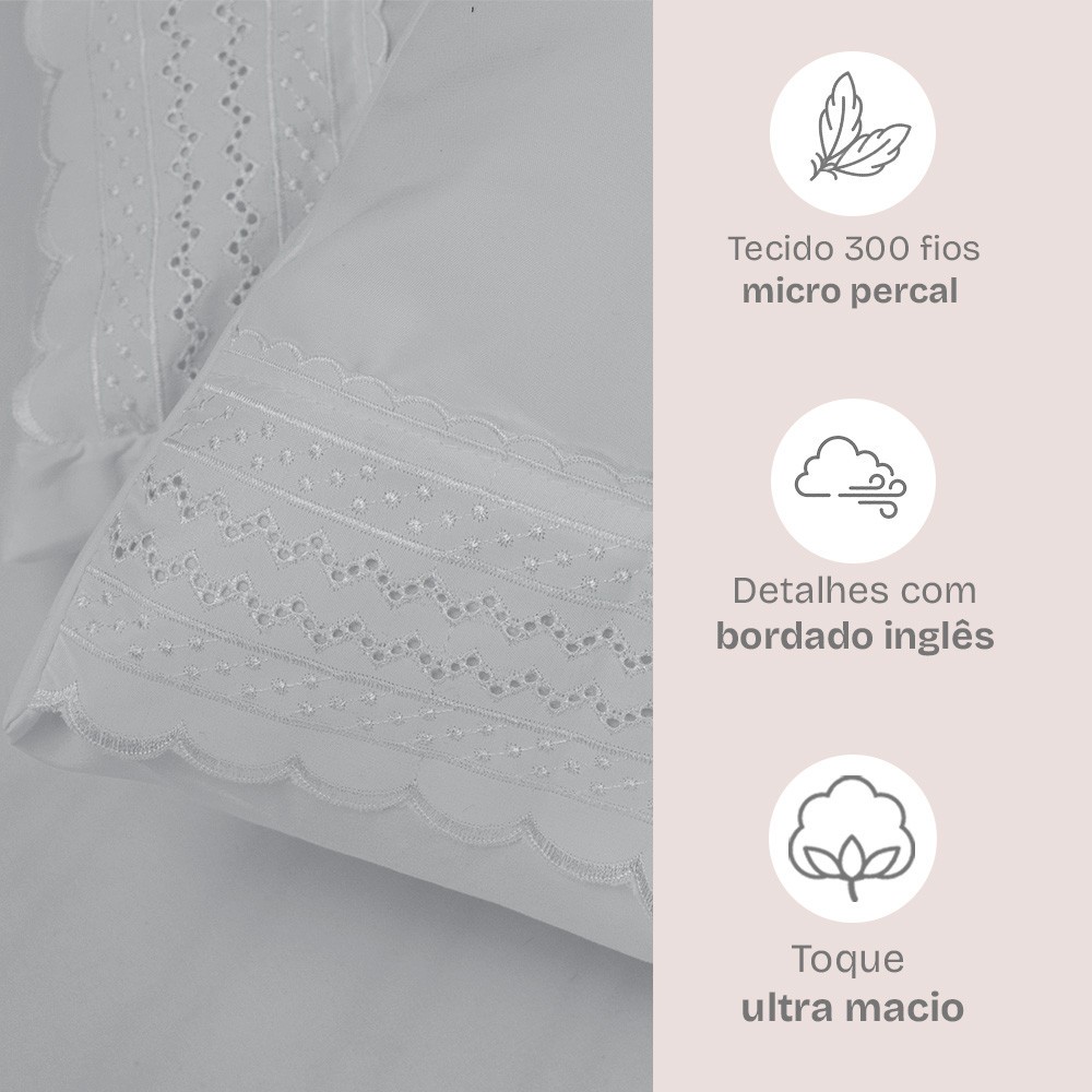 Jogo de Cama Lençol King Micro Percal 300 fios com 4 Peças Premium - BF Colchões
