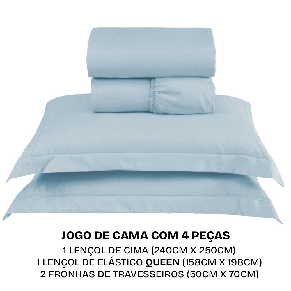 Jogo de Cama Queen 300 Fios Percal Algodão com Bordado 4 Peças BF Colchões
