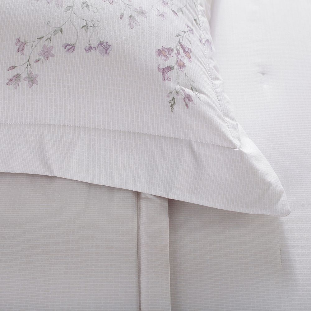 CARACTERÍSTICA DO PRODUTO: Delicados florais aquarelados em tons de lilás, aplicados ao fundo com textura de mosaicos, adornam a vira do sobrelençol e fronhas, criando uma composição refinada e muito charmosa. E os detalhes em ponto ajour enriquecem o acabamento com máxima sofisticação. Em Gran Percalle com 200 fios de puro algodão com fibras longas, o modelo possui toque extremamente macio e aconchegante, promovendo sensações agradáveis para uma cama perfeita. Qualidade e design Buddemeyer CONTEÚDO DA EMBALAGEM: Contém: 1 sobrelençol 240x270cm + 1 lençol 160x200x40cm + 2 fronhas 50x70cm COMPOSIÇÃO: Tecido Gran Percalle 200 Fios - 100% algodão TIPO DE MATERIAL: Tecido 100% algodão DESCRIÇÃO: Jogo de Cama Queen Manila Buddemeyer - Com a beleza e o frescor de um exuberante jardim, a Coleção Manila Gran Percalle, convida a momentos acolhedores e muito relaxantes. Delicados florais aquarelados em tons de lilás, aplicados ao fundo com textura de mosaicos, adornam a vira do sobrelençol e fronhas, criando uma composição refinada e muito charmosa. E os detalhes em ponto ajour enriquecem o acabamento com máxima sofisticação. Em Gran Percalle com 200 fios de puro algodão com fibras longas, o modelo possui toque extremamente macio e aconchegante, promovendo sensações agradáveis para uma cama perfeita. Acompanha embalagem feita com o mesmo tecido do lençol, para manter os itens organizados e fáceis de guardar. A Buddemeyer é referência em qualidade e estilo. INSTRUÇÕES DE CUIDADO: Lave antes de usar. Cores escuras devem ser lavadas separadas das cores claras. Lavar em água fria ou em temperatura de até 60°C. O melhor sabão para manter as características do produto é o de coco ou neutro. Não colocar sabão diretamente no produto. Evite alvejantes e quaisquer produtos a base de cloro, eles atacam o corante dos tecidos. Não exagere no uso de sabão em pó e use pouco amaciante. Permite secadora em temperatura baixa. Temperatura máxima da base do ferro 110°C. Não usar ferro a vapor. Não lavar a seco.