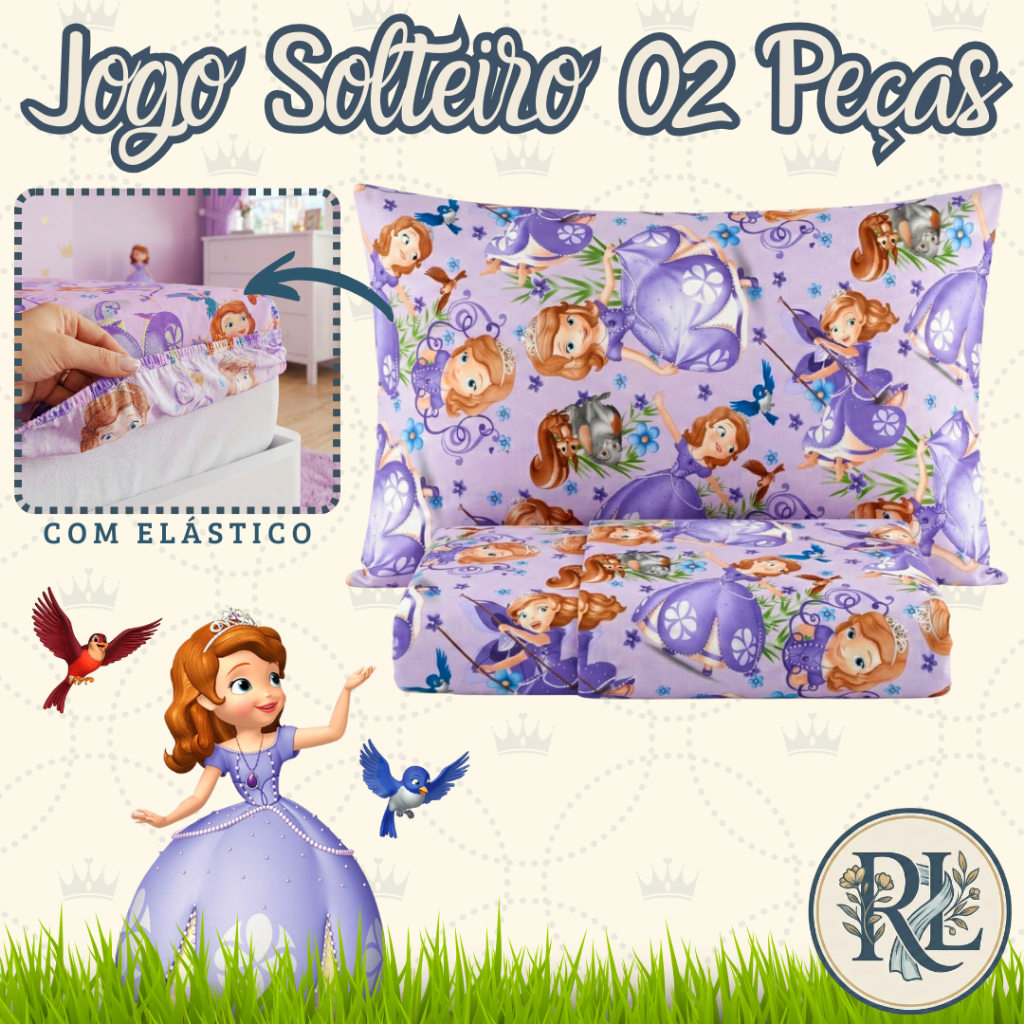 Jogo de Cama Solteiro 2 Peças Infantil (Lençol Parte de Baixo + Fronha)
