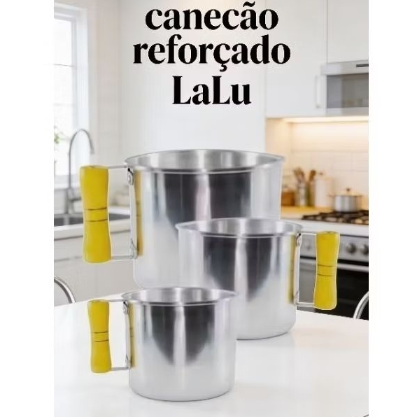 JOGO DE CANECÃO EXTRA REFORÇADO LEITEIRA 03 PCS COM ORLA AMAÇADA REFORÇADO CABO DE MADEIRA