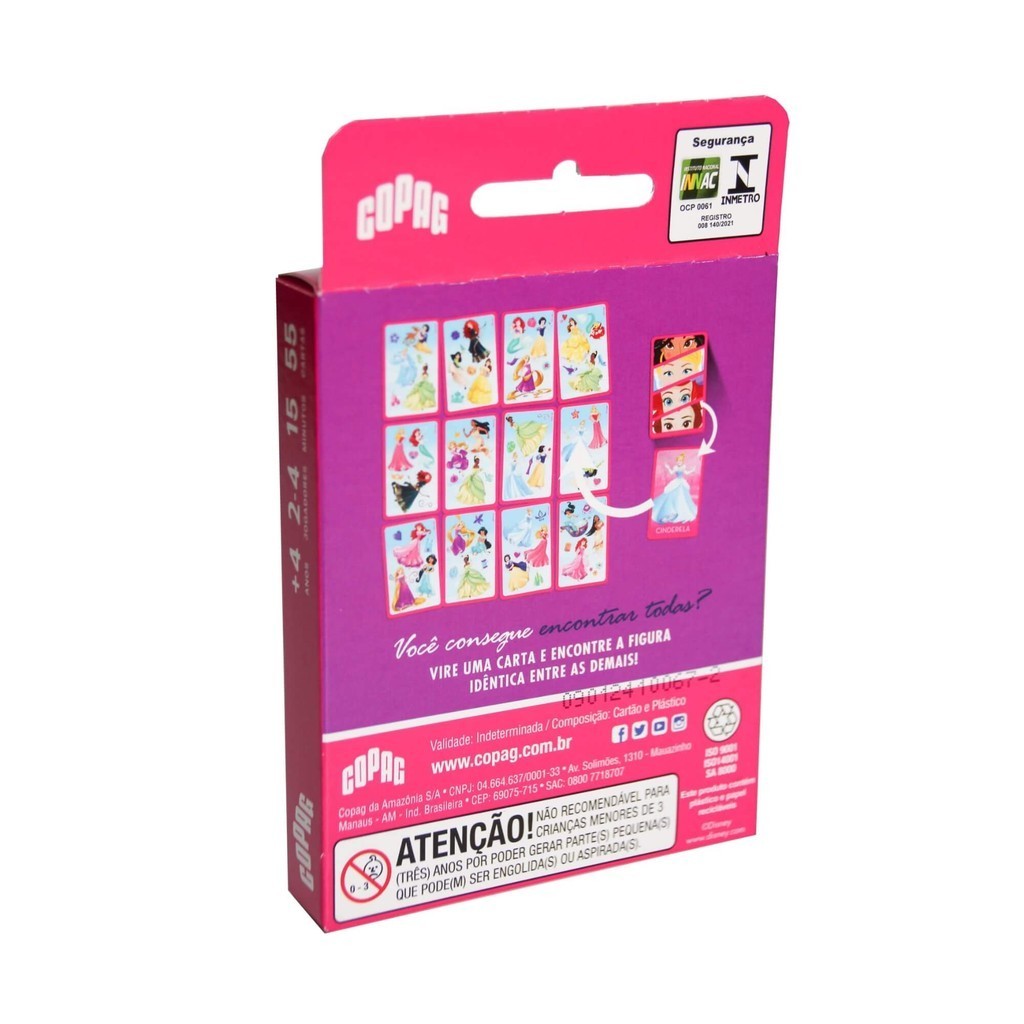 Eu Vi super-heroínas! Ou seriam princesas? Os dois! Aqui, as princesas Disney são tão ágeis que podem confundir sua visão! Encontre no grande universo de imagens das Cartas-Tabuleiro a figura correspondente a cada Carta Personagem revelada. Mas, cuidado! Vilãs também podem aparecer - e quando a bruxa está solta, figuras mudam de lugar e tudo vira confusão! Características: - Marca: Copag - Modelo: 34068 *Imagens meramente ilustrativas Conteúdo da Embalagem: Contém 55 cartas no formato 56 mmx 87 mm Jogo de Cartas - Copag - Jogos De Galera