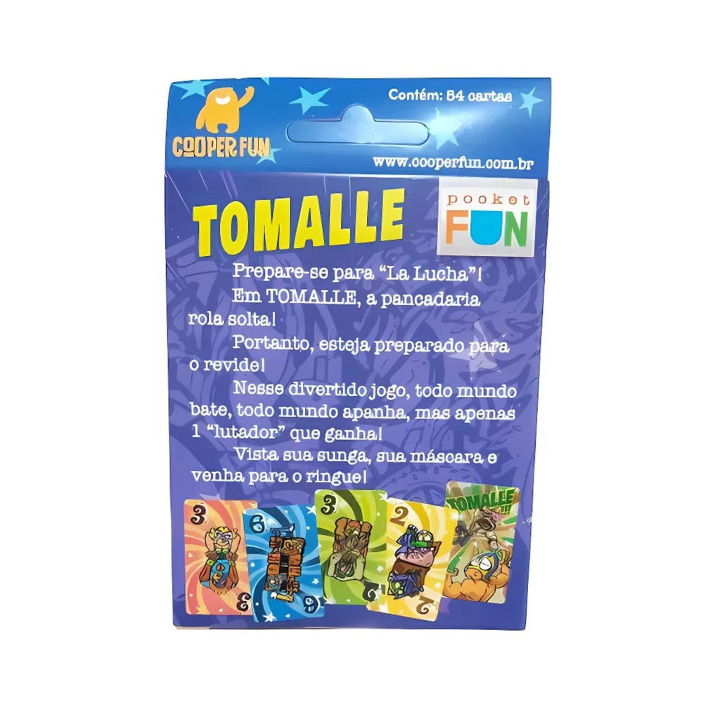 Afinal, quem é UNO na fila do... TOMALLE!!! "Tomalle" é formado quatro cores de cartas numeradas. Os jogadores devem se livrar das suas cartas, encaixando uma carta da sua mão com o número da carta que está na mesa (colocar o próximo número ou o anterior). Se, ao encaixar a carta, a cor das cartas for a mesma, o jogador pode escolher um adversário para pegar mais cartas. Existem situações em que o jogador que está sendo atacado pode aumentar o ataque e redirecionar para outro adversário. Apesar da grande influência da sorte nesse estilo de jogo, "Tomalle" permite que algumas estratégias sejam adotadas, como a escolha do alvo dos ataques e a escolha de cores com menos ou mais chances de ataques. Jogo de Cartas é um jogo super divertido e colorido, são 54 cartas todas com uma linda ilustração.Objetivo do jogo além de promover diversão, e desenvolver o raciocínio lógico das crianças e sua percepção visual Um jogo de ótima qualidade e todas as suas peças são fáceis de destacar, garantindo muita diversão. Desenvolve: - Estratégia - Blefe - Socialização - Atenção e Foco - Recomendado: 7 anos - Medida Aproximada da Embalagem: 2,4 x 11,2 x 9,2cm Características: - Marca: COOPER FUN - Modelo: 00130 *Imagens Meramente Ilustrativas* Conteúdo da Embalagem: - 01x Jogo de Cartas com 54 cartas ilustradas jogo - jogo de cartas - jogos em familia - jogo de estrategia - cooper fun