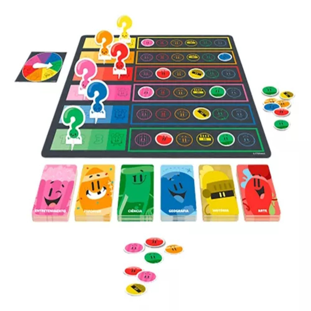Aplicativo de sucesso mundial, agora em tabuleiro! O Perguntados é um jogo divertido de perguntas e respostas para toda família. Gire a roleta e teste seu conhecimento! Jogue com 360 novas perguntas neste incrível Tabuleiro. O Jogo Perguntados contém: - 01 Roleta - 01 Baralhos com 204 cartas no formato 56 mm x 87 mm - 01 tabuleiro - 01 cartela de punchboard com peões, fichas e base da roleta. - 01 Manual de regras