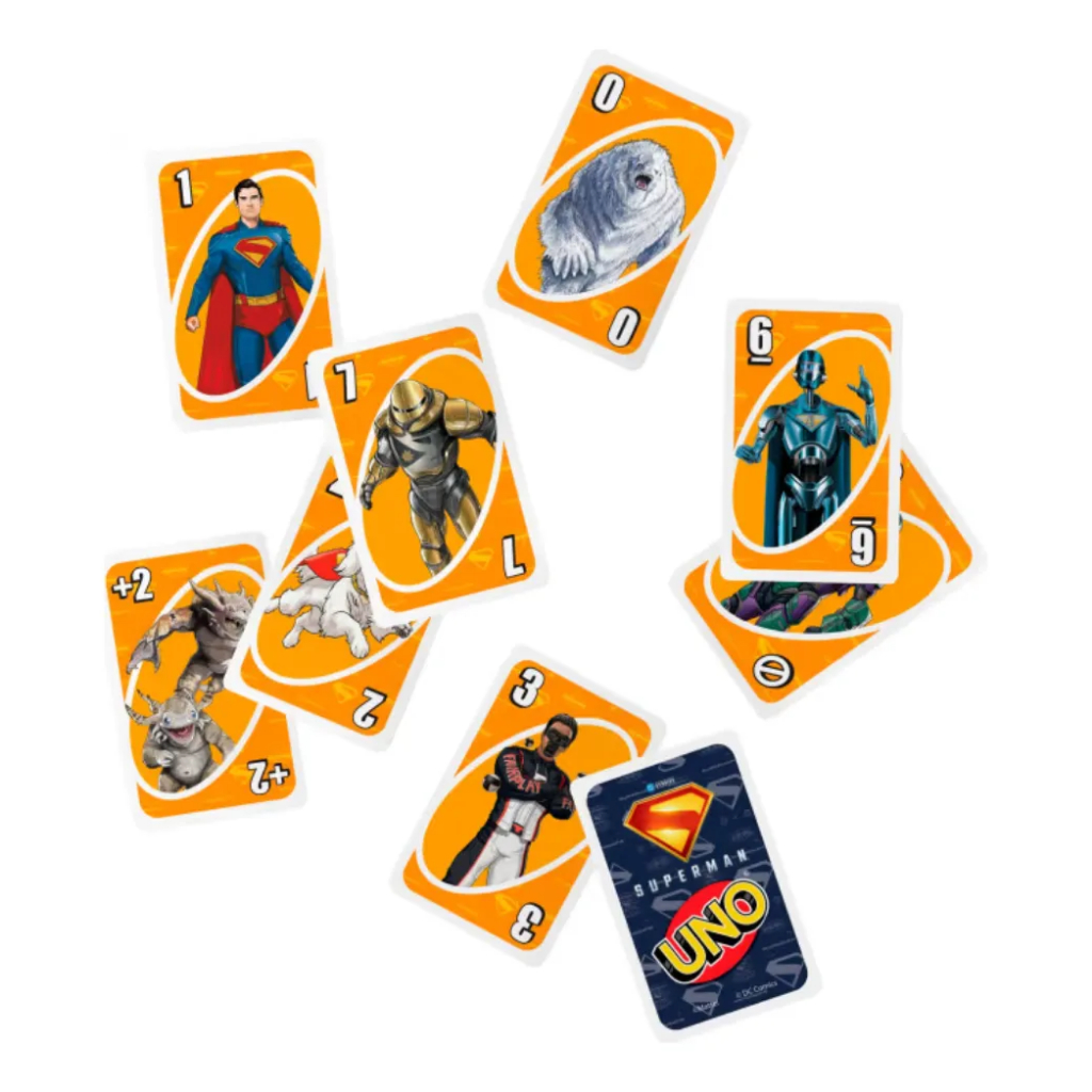 JOGO DE CARTAS UNO SUPERMAN: DIVERSÃO GARANTIDA! Entre no universo heroico do Superman com este jogo de cartas personalizado que traz emoção e estratégia para cada rodada. Ideal para fãs de todas as idades, combina a clássica diversão do Uno com uma temática exclusiva e cheia de aventuras. Com regras especiais que desafiam suas habilidades, ele é perfeito para reuniões em família ou entre amigos. Perfeito para entusiastas de super-heróis, este jogo inclui 112 cartas resistentes e uma experiência imersiva que mantém a diversão sempre renovada. Desenvolvido pela Mattel, oferece partidas rápidas e animadas para grupos de 2 a 10 jogadores, garantindo entretenimento para crianças a partir dos 7 anos. ------------------------------------------------------------------------------------------------------------------------------------- DIMENSÕES E PESO: Altura: 14 cm Largura: 9 cm Comprimento: 2 cm Peso: 160 g