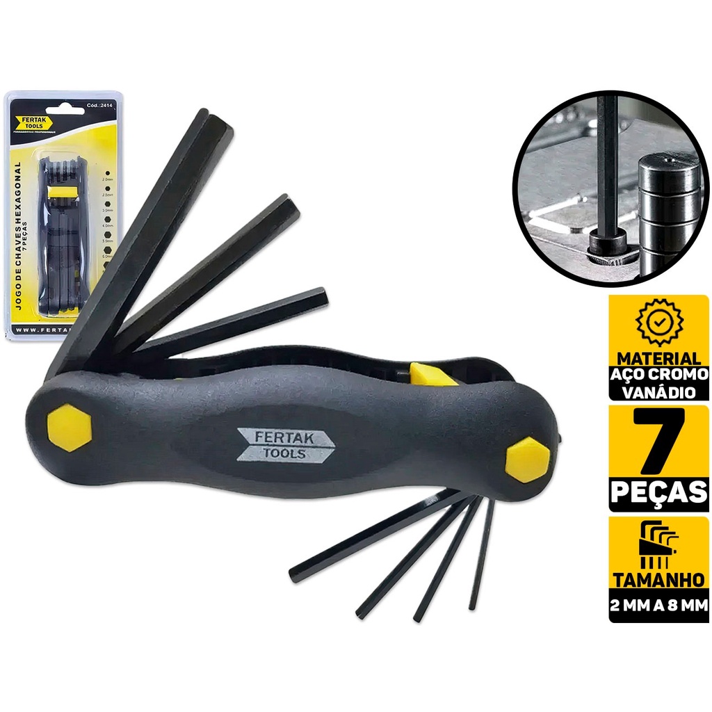 Jogo De Chave Allen 2 A 8mm Jogo Bolso Hexagonal Aço Carbono 7 Peças Fertak