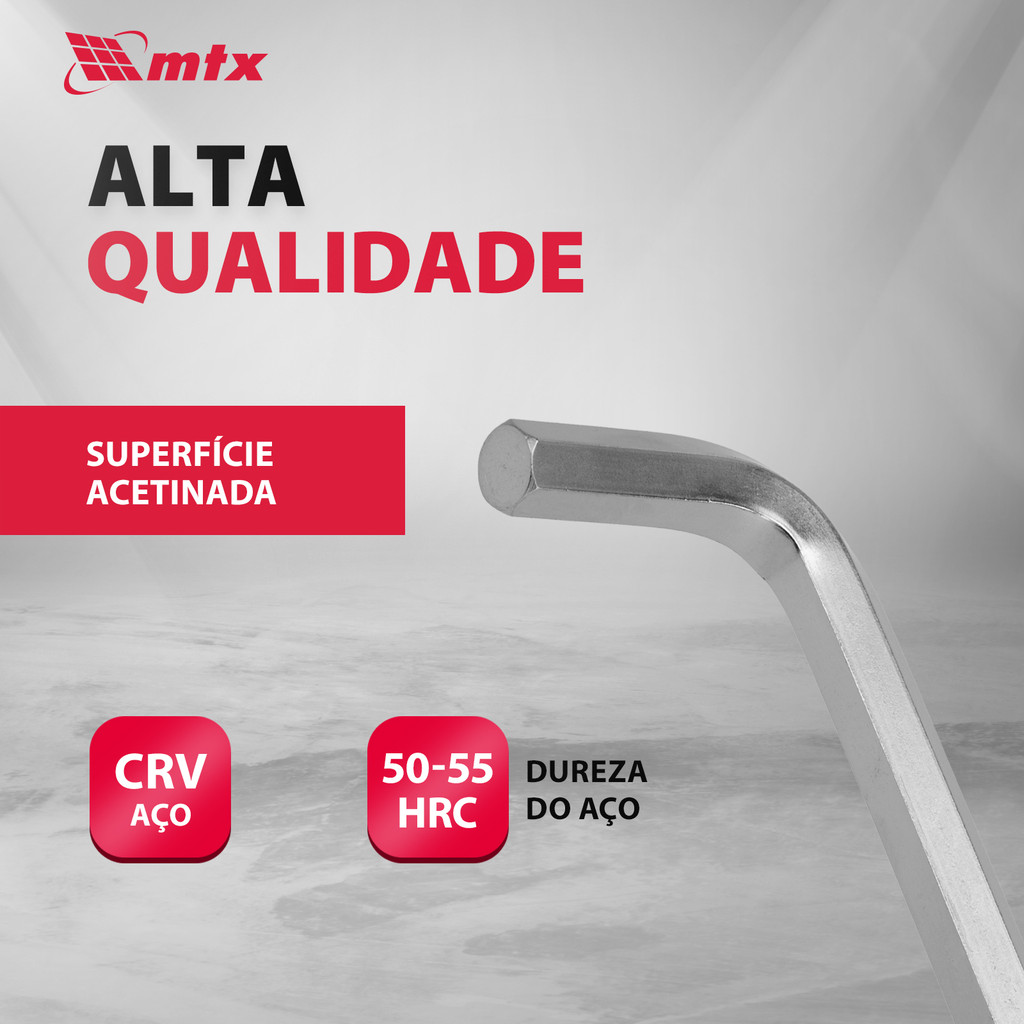 JOGO DE CHAVE ALLEN LONGA, ACABAMENTO ACETINADO, CROMO VANADIO, 2-12MM, 9PCS // MTX