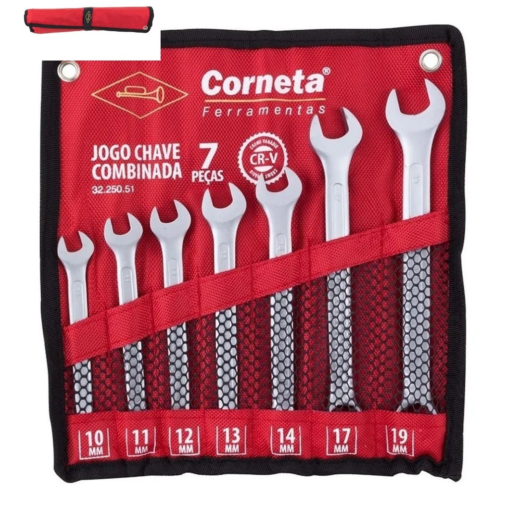Jogo de Chave Combinada Plana 7 Peças 10/19 MM Corneta