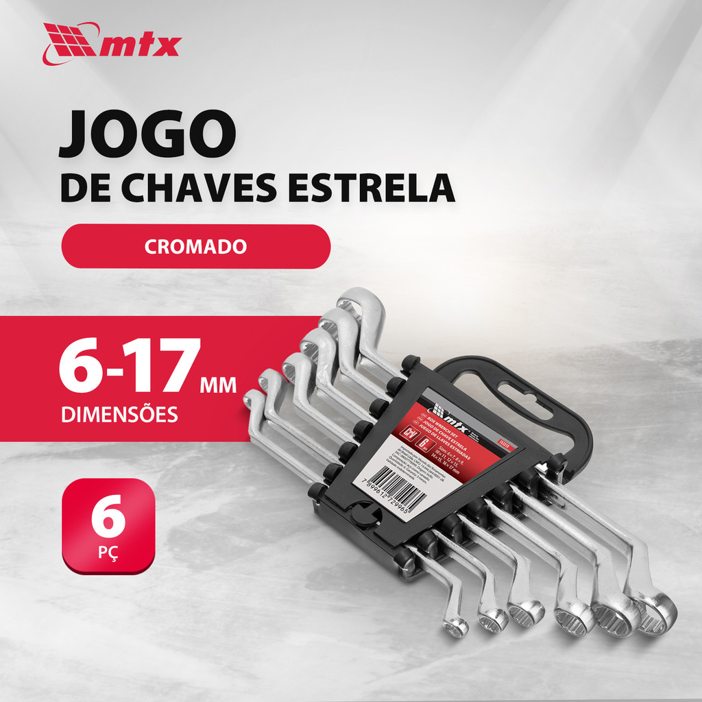 JOGO DE CHAVE ESTRELA, CROMO VANADIO, CROMO FOSCO, 6-17MM, 6PCS // MTX