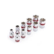 CARACTERÍSTICAS: Soquetes Estriado; Encaixe: 1/2''; Comprimento: 77,0mm; Quantidade: 10 soquetes; Material: Aço cromo vanádio; Medidas: 10,0mm / 12,0mm / 13,0mm / 14,0mm / 15,0mm / 16,0mm / 17,0mm / 19,0mm / 21,0mm e 22,0mm.