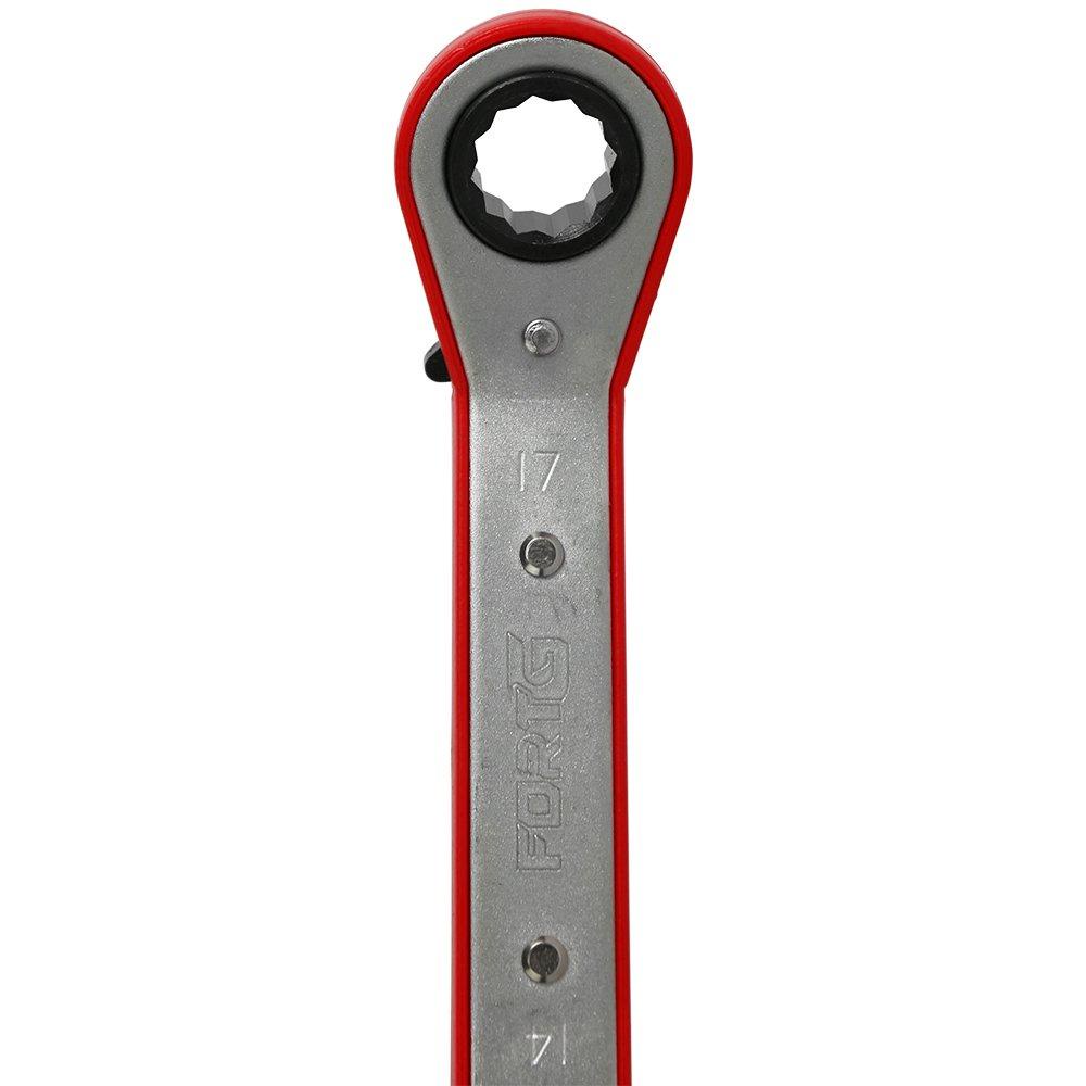 Loja do Mecânico - O que você precisa, nós temos! O Jogo de chaves estrela com catraca é forjado em aço especial de alta resistência e qualidade. Possuem sistema de catraca em ambos os lados o que reduz o esforço do operador sem perder o poder de torque de uma chave estrela, além de conter alavanca de reversão o que possibilita apertar e desapertar sem tirar a chave do parafuso. Produto de ótima durabilidade, testado e aprovado por profissionais de reparação automotiva. Indicadas para aperto e desaperto de porcas, parafusos quadrados e sextavados. - Marca: FortG - Modelo: FORTGPRO-FG150 - Jogo composto por 05, com as seguintes medidas: -- 6 x 8, 10 x 12, 11 x 13, 14 x 17 e 19 x 21 mm Importante - Garantia de 06 meses; - Enviamos em até 24 horas úteis; - A embalagem pode variar de acordo com o estoque do fabricante; - A cor do produto pode variar de acordo com a tela do seu smartphone/computador; - Qualquer dúvida, utilize o campo "Perguntas e Respostas" e converse com o nosso SAC.