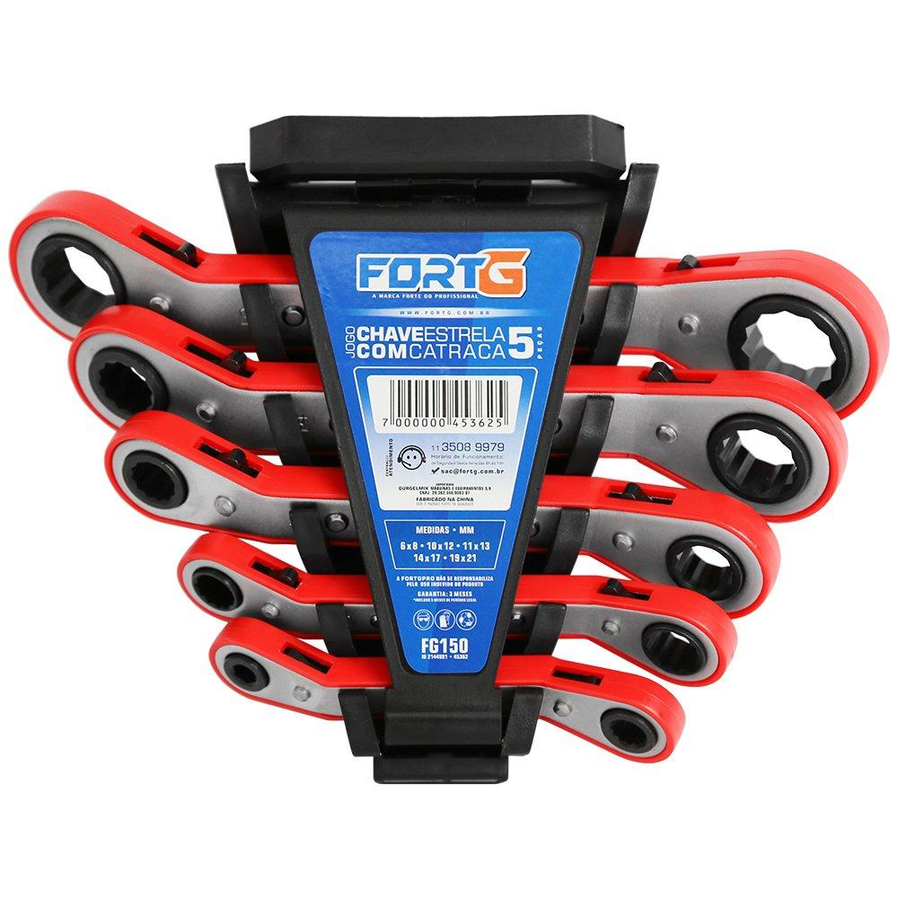 Jogo de Chaves Estrela Feita em Aço Resistente Catraca 6 x 21mm 5 Peças FortG