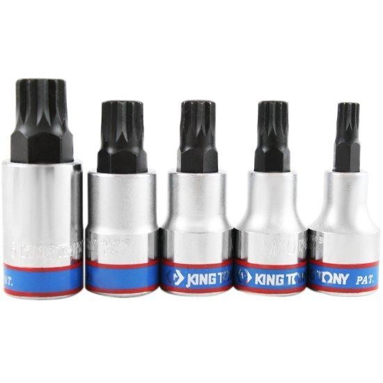Jogo de chaves soquetes multidentada, de alta qualidade e ótima performance de uso. - Especificações Técnicas: :: Soquete fabricado em aço cromo-vanádio :: Acabamento superficial cromado e polido :: Bit em aço cromo-vanádio com liga de silicone (S2) :: Medidas: M8, M10, M12, M14 e M16 (com guia) - Conteúdo da Embalagem: :: Contém 5 Peças - Garantia: 1 Ano - 4712755358041 iveis erro Ref.: KINGTONY-4105PR Marca.: KINGTONY