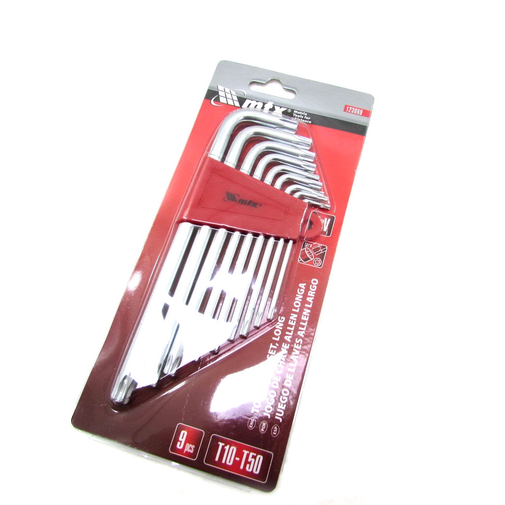 Jogo de Chaves Torx (CrV Cromo Vanádio) Extra Longa | Longa | Curta de T10 a T50 9 Pçs Com Furo