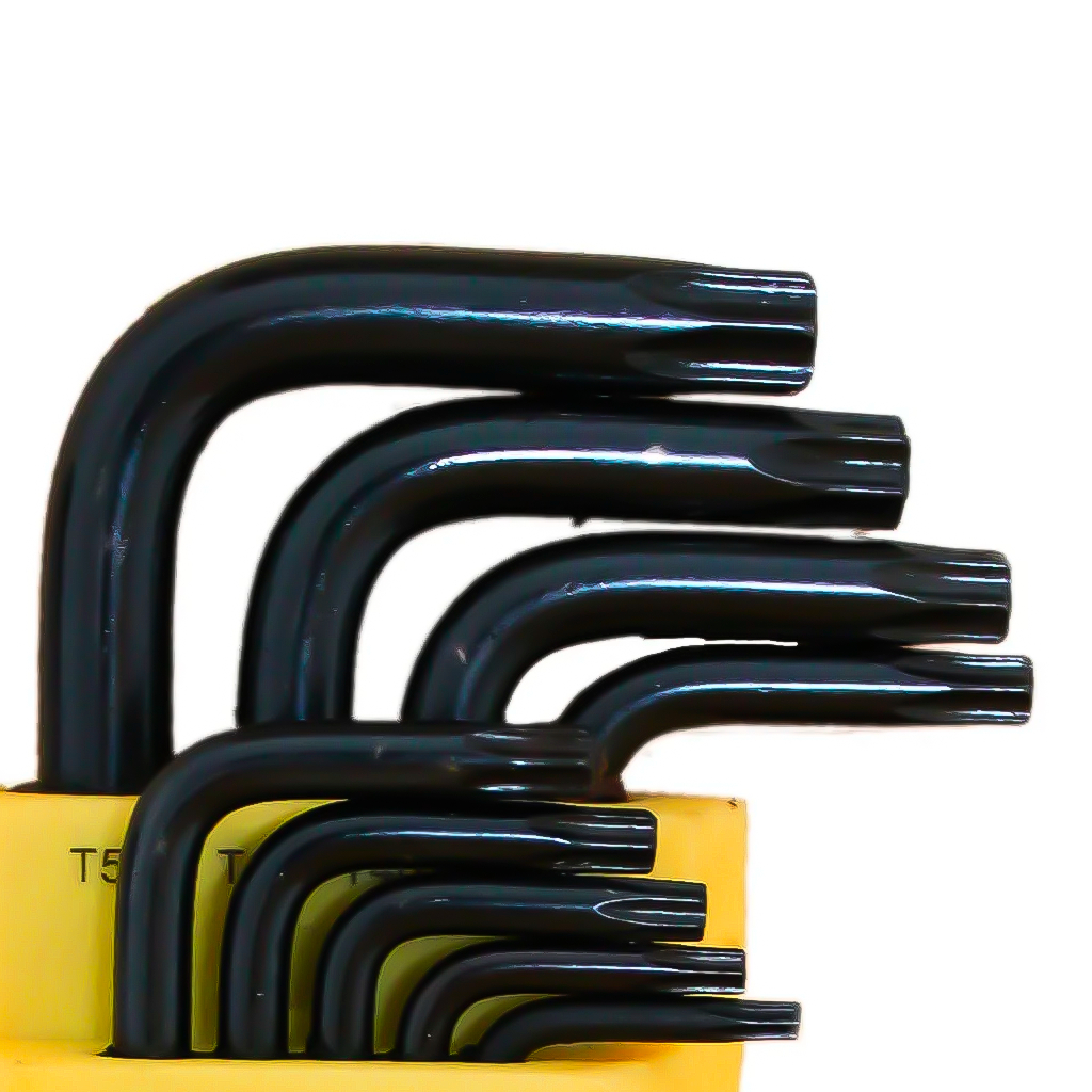 Jogo De Chaves Torx Longa - Curta Com Furo 9 Peças Cr-V Cromo Vanádio Profissional