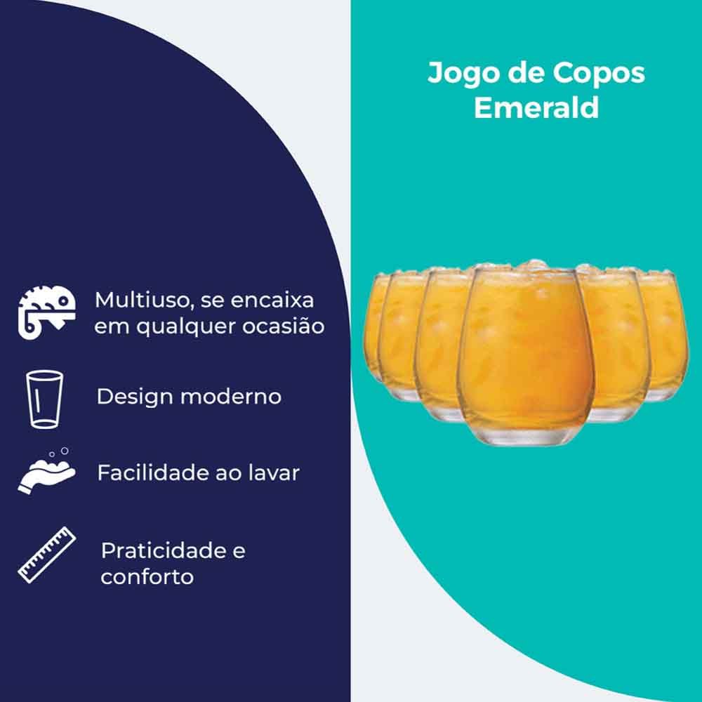 Jogo de Copo de Vidro Emerald, Copo de Suco e Água 6pcs, 350ml - Ruvolo