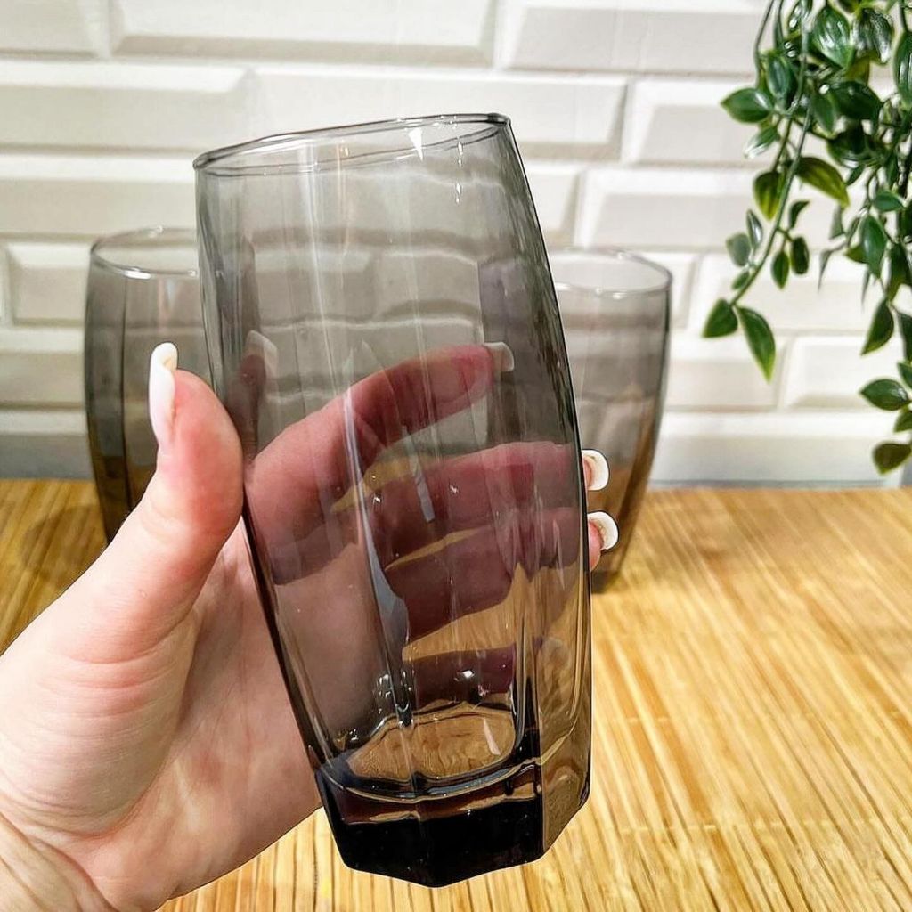 Jogo de Copo Vidro Cinza Preto Texas Florida 320ml Quadrado - 6 Unidades