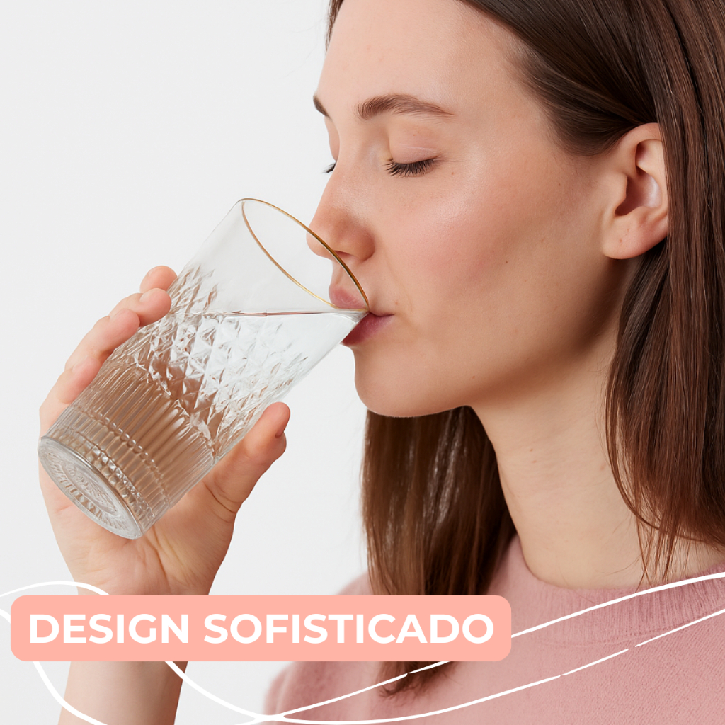 Jogo de Copos Alto de Vidro Fio de Ouro Borda Dourada 350ml Esplanada 6 Unidades