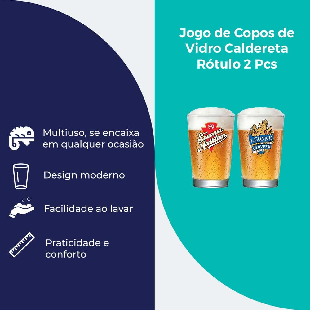 | Jogo de Copos de Vidro Caldereta Rótulo Para Cerveja 350ml 2 Pcs - ... este produto | R$ 19,99 | 56% | 4.9/5 | 4 |