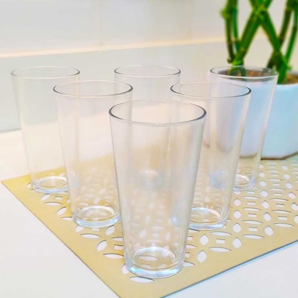 Jogo de Copos de Vidro SM Cairo 350ml 6 Unidade - Nadir 2644 Jogo com 6 copos SM Cairo com 350 ml, ideal para sucos, refrigerantes e bebidas em geral. Com design tradicional, é produzido em vidro cristalino. Características do Produto: Modelo: Cairo Indicado para: Água, Suco, refrigerante Tipo: Copo Marca: Nadir Dimensões do Produto: ø 7,6 cm x 13,8 cm Capacidade: 350 ml Peso: 0,23 kg Material da Estrutura: Vidro Tonalidade do Prato: Transparente Quantidade de Peças: 6 Unidades Pode ser Levado no Micro-ondas: Sim Dica de uso e preservação: Para limpeza, remova a sujeira com uma esponja macia, tire todo o resíduo de sabão e seque bem. Não utilize abrasivos ou utensílios pontiagudos. Submeter o vidro a mudanças bruscas de temperatura pode causar choque térmico e danificar seu produto. Evite impactos.