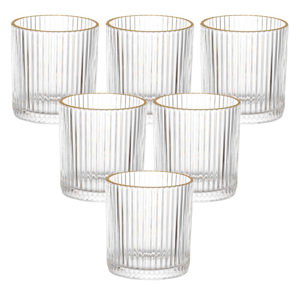 Jogo De Copos De Vidro Transparente Graffiato Fio De Ouro 320ml 6 Peças - Hauskraft
