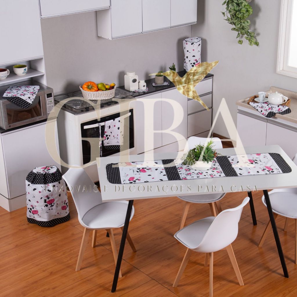 ENVIO IMEDIATO!! Deixe sua cozinha muito mais organizada e elegante com o nosso Kit Cozinha 10 Peças. Confeccionado em tecido Oxford de alta qualidade, ele oferece durabilidade, cores vivas e um caimento perfeito nos seus eletrodomésticos. O que vem no pacote: * 01 Caminho de Mesa (1,40m) * 01 Meio Avental * 01 Capa para Botijão (13kg) * 01 Capa de Liquidificador * 02 Panos para Bandeja * 04 Porta Copos Diferenciais do nosso produto: * Material: Tecido Oxford (resistente, não desbota fácil e seca rápido). * Acabamento: Todo feito em overloque, garantindo que as peças não desfiem. * Versatilidade: Protege seus aparelhos contra poeira e gordura, além de decorar o ambiente.