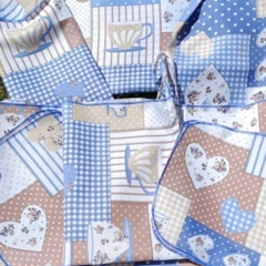 - Kit Jogo Cozinha Estampados 10 Peças. + - Capa Para Galão para Galão 20l Jogo De Cozinha confeccionado em Poliéster e Algodão deixando sua casa mais alegre e bonita!!! Contém No Kit 10 Peças; 01 Caminho Mesa 1,40 x 0,40 cm 01 Meio Avental 04 Toalhinhas 0,18 x 0,18 cm 01 Bandeja Multiuso de 0,42 x 0,30 cm 01 Bandeja de Pão 0,42 x 0,30 cm 01 Capa de Liquidificador 01 Capa de Botijão Tecido: Poliéster AS ESTAMPAS SÃO IGUAIS AS IMAGENS Preço de Fábrica. Produto de Qualidade.
