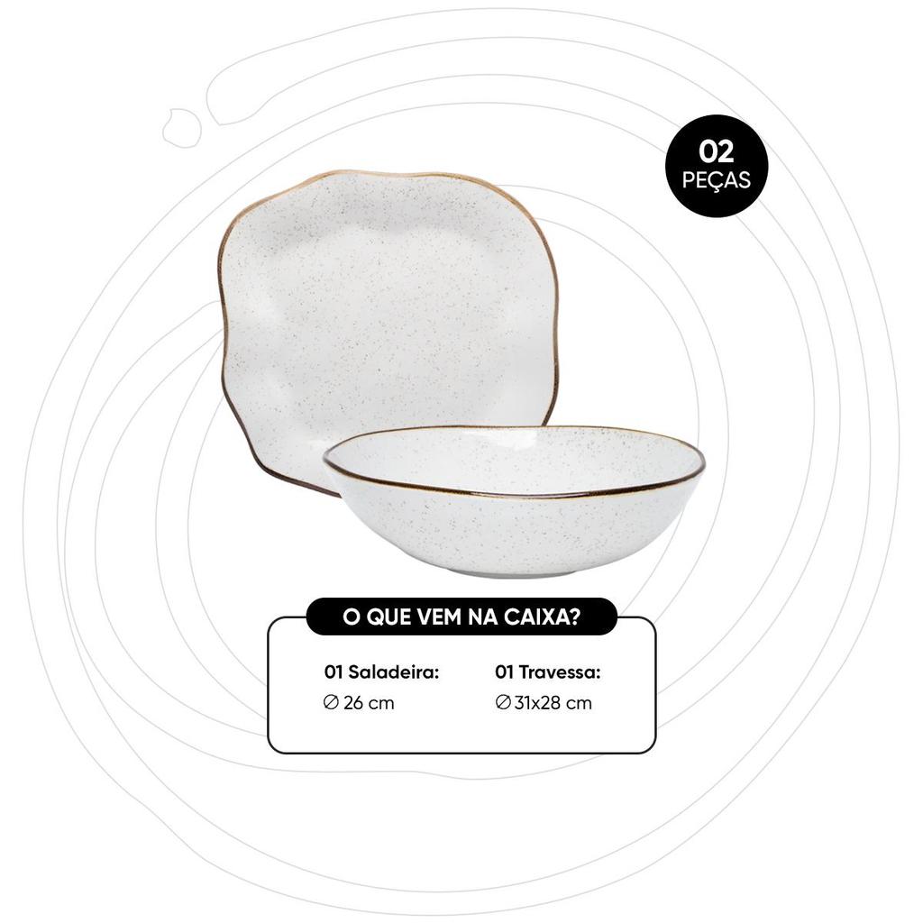 O wabi-sabi é um conceito japonês que valoriza o imperfeito, do processo de criação até o seu acabamento. Exaltar o irregular, o impermanente e o incompleto é uma homenagem da linha Ryo à esta sabedoria japonesa. A coleção Ryo Maresia traz uma composição que valoriza a beleza das praias, o toque da areia e o frescor do mar. Todas as peças da coleção Ryo Maresia recebem aplicação de esmalte com pigmentação e de um filete reagente aplicado de forma manual garantindo a unicidade de cada peça. Produzido em porcelana, o conjunto de baixelas Ryo Maresia é composto por 2 peças, que podem ser levadas ao micro-ondas e à máquina de lavar louças. Conteúdo da embalagem: 1 saladeira com 26 cm de diâmetro e 1.600 ml de capacidade / 1 travessa de 31 cm x 28 cm - Garantia: 3 Meses para Defeitos de fabricação - Marca: Oxford - Uso: Resistente a micro-ondas e lava-louças - Tipo da embalagem: Papelão pardo - Cor: Multicor - Tipo do jogo: Baixelas - Material: Porcelana - Formato: Orgânico - Formato de venda : Kit - Unidades por kit: 2 - Utilizações seguras: Micro-ondas e lava-louças ATENÇÃO: Para compras de pessoa jurídica,cadastreosdados exatamente como consta em seu cartão do CNPJ