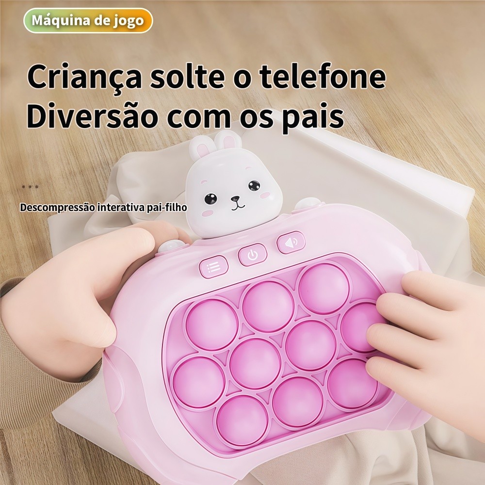 💖💖💖 Descrição do Produto: Máquina de Jogo Pop It – Brinquedo de Pressão Divertido e Anti-Stress ⭐ Principais Características: ✅ Modo Proteção: Feita de material ABS de alta qualidade, não tóxico e amigável à pele. Leve e ergonomicamente projetada, mesmo após longos períodos de uso, não causa desconforto nas mãos. ✅ Modo Diversão: Design divertido com ursinho e astronauta que encanta à primeira vista. Possui 4 modos de jogo com diferentes níveis de dificuldade, ajudando a exercitar velocidade de reação e memória. Adequado para combater o tédio e proporcionar diversão. ✅ Modo Treinamento: Jogos com luzes e sons que estimulam pensamento positivo, coordenação motora e concentração. Desenvolve habilidades de reação, memória e raciocínio lógico em crianças, e ajuda adultos a aliviar o estresse diário. ✅ Velocidade e Emoção: O Fast Push oferece desafios rápidos e empolgantes. Cada missão aumenta a dificuldade e exige atenção e rapidez. ✅ Design Atraente: Curvas que se encaixam confortavelmente na palma da mão, cores vibrantes e visual moderno que chamam atenção de crianças e adultos. ✅ Segurança em Primeiro Lugar: Produto isolado com proteção emborrachada, seguro para todas as idades. 📌 Especificações: Material: ABS de alta qualidade Tamanho: 13cm x 12cm x 6cm Alimentação: 3 pilhas AAA (não inclusas) Ideal para crianças, adolescentes e adultos 🎮 Modos de Jogo: Missão: 30 grandes missões, cada uma com 5 pequenas tarefas. Luzes aumentam com o progresso e o tempo diminui. Memória: 9 grandes missões, cada uma com 5 pequenas tarefas. Aguarde o acender das luzes antes de jogar. Pontuação: Pressione os botões de acordo com as luzes acesas dentro de 1 minuto. Multiplayer Inteligente: Cada jogador completa uma missão, o próximo inicia após o anterior. 🌟 Benefícios: Reduz estresse e ansiedade Desenvolve coordenação motora e concentração Exercita memória e raciocínio lógico Ótimo para viagens, festas e momentos de lazer 🙅♂️ Cuidados: Evite contato com água Evite quedas 🎁 Presente Ideal: Aniversários, Páscoa, Dia das Crianças, Halloween, Natal e outras ocasiões especiais.