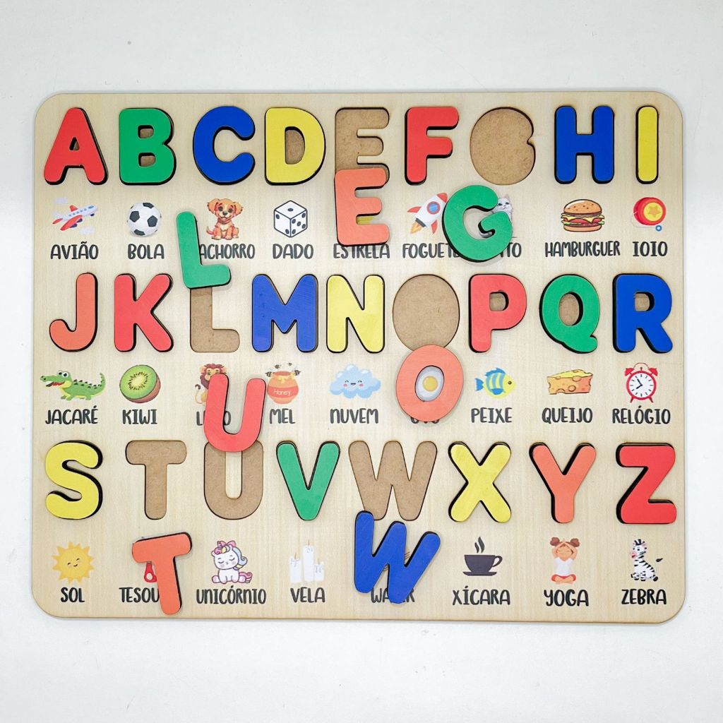 Jogo de Encaixe Alfabeto Em MDF - Pedagógico Montessori Pareamento Educativo ABC Alfabetização Volta as Aulas