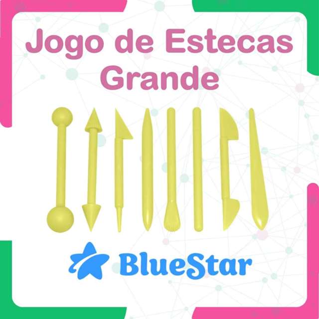 Jogo de Estecas Grande com 8pçs Blue Star Biscuit Pasta americana Modelagem Ferramenta Detalhes Profissional aparece na subcategoria Artigos de Arte (de Papelaria) na Shopee Brasil por R$ 24,70 (45% de desconto sobre o preço original de R$ 44,91).