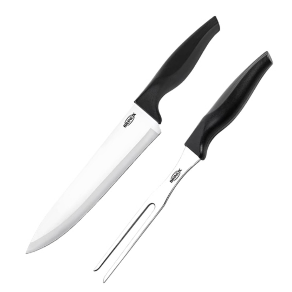 Jogo de Faca e Garfo Trinchante Kit Churrasco 2pcs Brinox Cross Aço Inox
