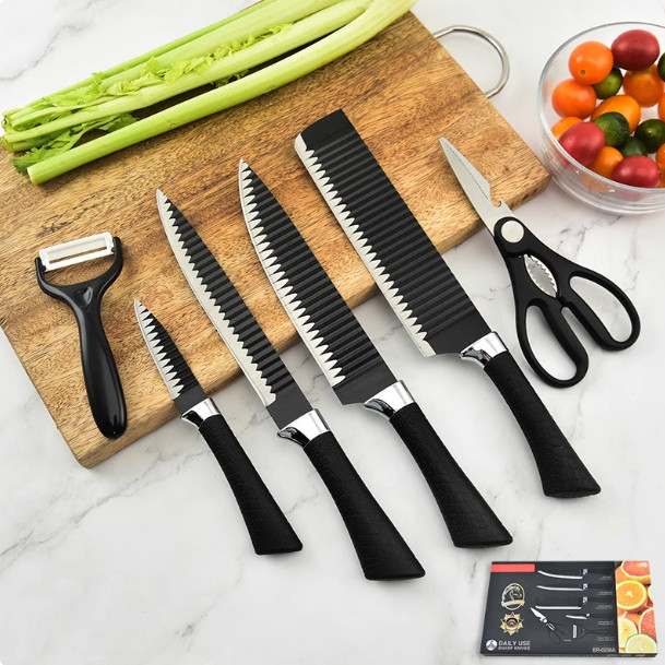 Catalogado na subcategoria Facas e Tesouras de Cozinha (de Casa e Construção), Jogo De Facas de Cozinha Designer Moderno Cabo Preto Laminas Aço Inoxidável 6pçs Cor Preto está à venda na Shopee Brasil por R$ 20,90 (47% de desconto sobre o preço original de R$ 39,43). Nota 5.0 de 5 na Shopee e 1 unidade vendida, este produto se destaca pelo excelente custo-benefício.