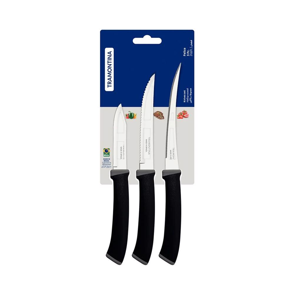Jogo de Facas Felice em Inox e Cabos em Polipropileno Preto 3 Peças - Tramontina