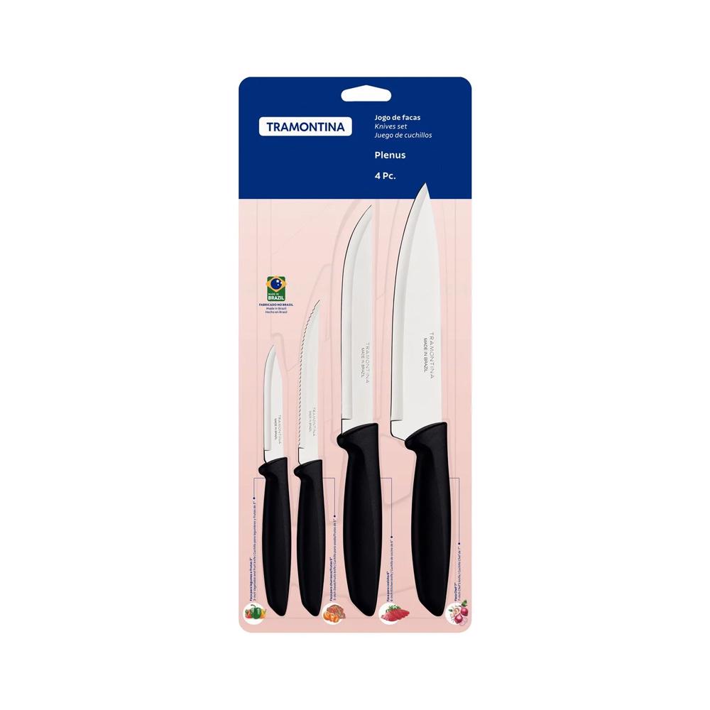 Jogo de Facas Plenus em Inox e Cabo de Polipropileno Preto 4 Peças - Tramontina