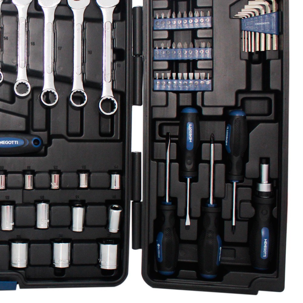 Produto: Jogo de ferramentas 106 peças com maleta - Max Marca: Menegotti Descrição: O Jogo de Ferramentas 106 Peças com Maleta Max da Menegotti, a escolha ideal para todos os seus projetos de manutenção, mecânica e construção. Este conjunto robusto foi cuidadosamente projetado para oferecer versatilidade, eficiência e durabilidade no uso diário ou em situações mais exigentes. Com 106 peças diversas, o Jogo de Ferramentas Max da Menegotti permite que você manuseie qualquer tarefa com facilidade. Desde apertar um simples parafuso até montar estruturas complexas, este kit tem tudo que você precisa. Além disso, a organização nunca foi tão fácil graças à maleta inclusa, que garante um armazenamento seguro e prático de cada item. Características: - Qualidade Superior: Cada ferramenta é fabricada com materiais de alto padrão, garantindo resistência e longevidade. - Maleta Resistente: Acompanha uma maleta robusta com encaixe perfeito para cada acessório, o que facilita o transporte e minimiza danos. - Versatilidade: Ideal para diversos trabalhos, desde pequenas manutenções domésticas até projetos de construção mais complexos. - Design Ergonômico: Ferramentas projetadas para um manuseio confortável, reduzindo a fadiga durante o uso prolongado. Especificações: Quantidade de peças: 106 peças Com maleta. Itens Inclusos: 1 Barra de Extensão de 1/4" 50mm 1 Conexão articulada 1/4" 1 Conexão articulada 1/2" 1 Barrade extensão 1/4" flexível150mm 1 Soquete de Vela com Encaixe de 1/2" 16mm 1 Soquete de Vela com Encaixede 1/2” 21mm 1 Adaptador de 3 vias 1/4” para 1/2” 1 Barrade Extensão de 1/2" 250mm 1 Barra de Extensão de 1/4”100mm 1 Alicate de Corte 6” 1 Alicate BombaD’Água 9,5” 1 AlicatedeBico 6” 1 Barra de Extensão de 1/2" 125mm 11 Chaves Combinadas,tamanhos:8mm,9mm,10mm,11mm,12mm,13mm,14mm,15mm,17mm,18mme19mm 1 Catraca Reversível comencaixe de 1/2" 1 Catraca Reversível com encaixe de 1/2" 11 Soquetes com Encaixe de 1/4” tamanhos: 4mm,5mm,6mm,7mm,8mm,9mm,10mm,11mm,12mm,13mme14mm 15 Soquetes com Encaixe de 1/2” Tamanhos:10mm,11mm,12mm,13mm,14mm,15mm,17mm,18mm,19mm,20m,21mm,22mm,23mm,24mme27mm 40 Bits variados 25mm 8 Chaves Hexagonais:1.5mm,2mm,2,5mm,3mm,4mm,5mm,5.5mme6mm 2 Chaves de Fenda:01SL5X75mm e 01SL6X100mm 2 Chaves Phillips:01PH1X75mm e 01PH2x100mm 1 Chave Multiuso Catraca 1 Maleta. Dimensões (C x L x A): 38.00 x 7.90 x 28.60 centímetros Peso: 7.54 Kg