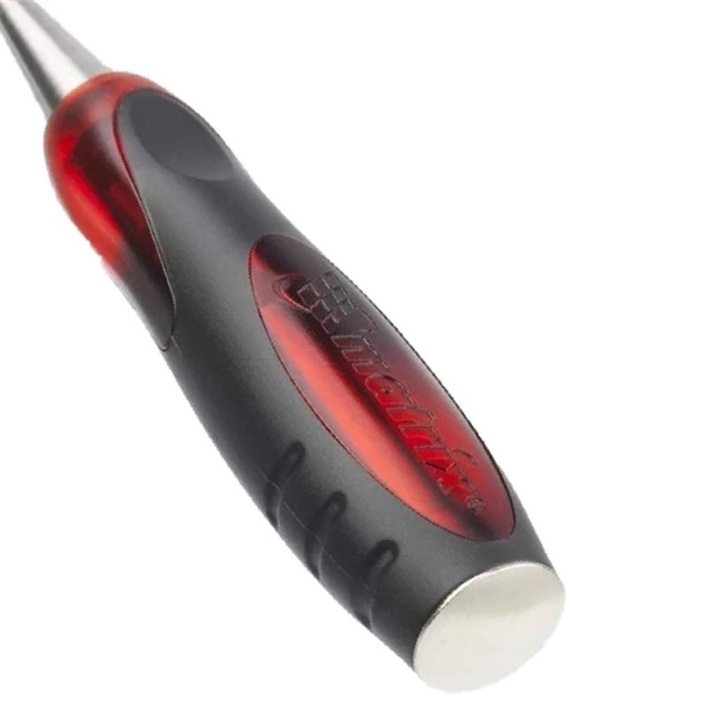 Jogo de Formão com 4 peças Cabo Olho de Tigre 244329 MTX- Formão "olho de tigre" Chanfrado e feito de Aço Cromo Vanádio inoxidável 65Mn;- Dureza: 65HRc;- Cabo resistente a golpes e feito de plastico duro com revestimento de borracha;- Cabo com dupla Injeção;- O formão tem placa traseira metálica e haste de um extremo a outro, que permite martelar o formão;Contém 4 Peças, sendo:- 01 Formão 06,0mm (1/4");- 01 Formão 12,0mm (1/2");- 01 Formão 18,0mm (23/32");- 01 Formão 24,0mm (15/16"). * Imagens meramente ilustrativas