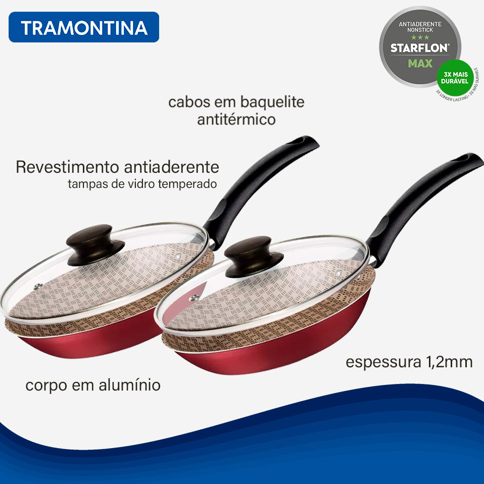 Jogo de Frigideiras com Tampa 24cm Tramontina Turim em Alumínio Antiaderente Vermelho