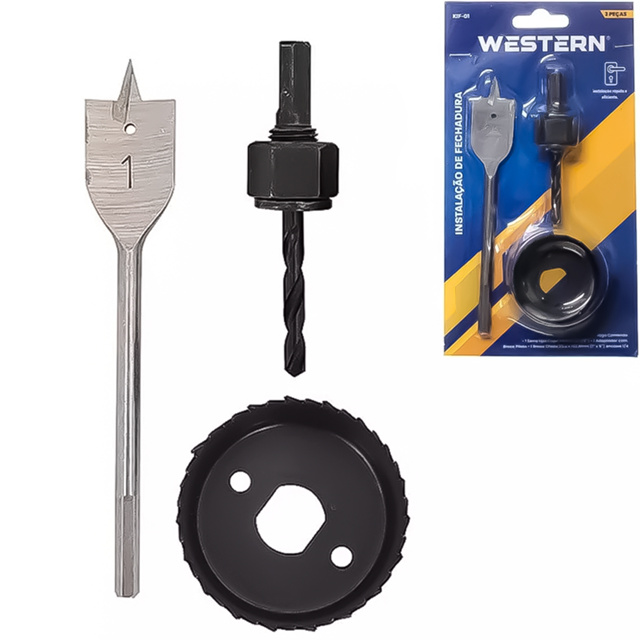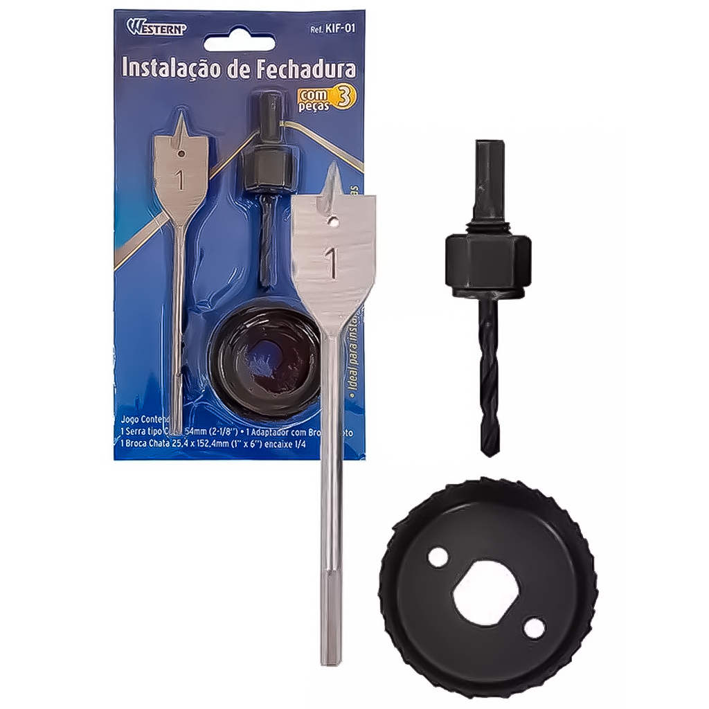 COMERCIAL VIPASA DISTRIBUIDORA Jogo De Instalação De Fechadura 03 Peças Ideal para instalar as fechaduras das portas. Este jogo de ferramentas facilita a instalação das fechaduras das portas. A broca de liga tem alta dureza e durabilidade, tornando a operação mais rápida e estável. Jogo Contendo: • 1 Serra tipo Copo 54mm (2-1/8"). • 1 Adaptador com Broca Piloto. • 1 Broca Chata 25,4 x 152,4mm (1" x 6") encaixe 1/4. Detalhes técnicos: Marca: Western Referencia: KIF-01 Material: Aço carbono Cor: Preto com Cinza Tipo de Embalagem: Suporte Dimensões da Peça: • Serra tipo Copo: 5,4 x 5,4 x 2,8cm • Adaptador com broca piloto: 9 x 2,2 x 2,2cm • Broca Chata: 25,4 x 15,2 x 0,7cm O "Jogo de Instalação de Fechadura 03 Peças": Conjunto Completo para Instalação de Fechaduras: Este conjunto de instalação de fechaduras é essencial para qualquer projeto de montagem ou substituição de fechaduras em portas interiores ou exteriores. Três Peças Essenciais: O conjunto inclui três ferramentas fundamentais para a instalação precisa e eficiente de fechaduras: uma broca para furos piloto, uma gabarito para marcação precisa e um jogo de chaves de fenda para fixação. Broca para Furos Piloto: A broca incluída é projetada para perfurar furos piloto precisos nos locais corretos da porta ou do batente, garantindo uma instalação perfeita da fechadura. Gabarito para Marcação Precisa: O gabarito permite marcar os pontos exatos onde os furos para a fechadura e a maçaneta devem ser perfurados, proporcionando uma instalação alinhada e uniforme. Chaves de Fenda para Fixação: As chaves de fenda incluídas são ideais para fixar a fechadura e a maçaneta no lugar, garantindo uma montagem segura e estável. Construção Durável e Resistente: Todas as peças do conjunto são fabricadas com materiais de alta qualidade, proporcionando durabilidade e resistência para uso prolongado. Compatibilidade Universal: Este conjunto é adequado para instalar uma variedade de tipos e tamanhos de fechaduras, tornando-o versátil e adequado para uma variedade de projetos de melhorias domésticas. Facilidade de Uso: Projetado para ser fácil de usar, mesmo para iniciantes, este conjunto torna o processo de instalação de fechaduras rápido, simples e livre de complicações. Com o conjunto de instalação de fechaduras de 03 peças, você terá todas as ferramentas necessárias para realizar facilmente a instalação precisa e profissional de fechaduras em portas, proporcionando segurança e funcionalidade para sua casa COMERCIAL VIPASA DISTRIBUIDORA