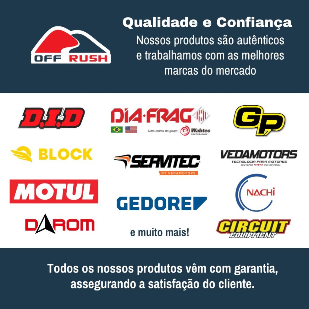 SKU: VS10700000680 EAN: 7899641837228 PESO APROX: 0,08 (Kg) SOBRE A MARCA Fundada há mais de 29 anos, a Vedamotors se consolidou como o principal fabricante de juntas e sistemas de vedação para motores de motocicletas, motosserras, motores marítimos e juntas industriais para o mercado mundial, fabricando e distribuindo produtos em todo o mundo. Nosso negócio, que começou no setor de juntas industriais, evoluiu ao longo dos anos para nos tornar uma das marcas preferidas de peças de reposição do mercado. Atualmente a Vedamotors é composta por duas divisões: Indústria e Aftermarket. Dois corações unidos por um único objetivo: entregar produtos de qualidade superior, feitos com um sólido know-how, configurados de maneira personalizada e cuidadosamente selecionados para oferecer aos nossos clientes apenas o melhor: paixão, confiabilidade e transparência. É isso que nos torna um ponto de referência para as principais montadoras e líderes de mercado. SOBRE O MODELO As juntas Vedamotors são fabricadas com matéria-prima desenvolvida pelo grupo Athena, garantindo a perfeita durabilidade e resistência ás altas temperaturas, a absorção de fluídos lubrificantes e ao liquido de arrefecimento. Não necessita de nenhum tipo de silicone, cola ou componente químico na sua montagem. A juntas possuem uma cama anti-stick que evita a aderência do papel na carcaça e tampas do motor. Juntas 100% sem amianto. FUNCIONALIDADE As juntas no motor desempenham um papel crucial na vedação e no funcionamento adequado do sistema. Elas são projetadas para criar uma conexão hermética entre duas partes do motor, como blocos de cilindros, cabeçotes, cárter de óleo, coletor de admissão e escape, entre outras. É importante ressaltar que as juntas no motor estão sujeitas a desgaste e deterioração ao longo do tempo. Portanto, é essencial realizar a manutenção adequada do sistema, substituindo as juntas desgastadas ou danificadas para evitar vazamentos e problemas de desempenho do motor. APLICAÇÃO: YAMAHA > 150 > XTZ 150 CROSSER > 2014 em diante YAMAHA > 150 > YS 150 FAZER > 2014 em diante YAMAHA > 150 > 150 FACTOR > 2016 em diante *SEM BORRACHA RECOMENDAÇÕES: A desmontagem e montagem implicam em uso de ferramentas adequadas e muito cuidado, pois todos os componentes devem ser ajustados com exatidão. Contar com um profissional especializado para realizar essa tarefa evita que as peças sejam danificadas durante o processo, caso a tarefa seja feita de modo inadequado. Solicite sempre a NOTA FISCAL de Serviço do profissional que desempenhar a instalação; em casos de má instalação, ou danos no produto, é perdida a garantia do mesmo. PROCEDIMENTO DE GARANTIA: O produto será revisado e SE constatado o defeito será consertado. Caso não seja possível o conserto, será trocado por outro modelo novo e idêntico; O reenvio será por nossa conta; Caso não seja constatado qualquer defeito no produto, o mesmo será devolvido ao comprador com envio a pagar; O produto completo inclusive os acessórios originais, embalagem original, devem ser retornados, conforme descrito no anúncio, sob pena da anulação da garantia, com envio pago pelo comprador. *IMAGENS MERAMENTE ILUSTRATIVAS.